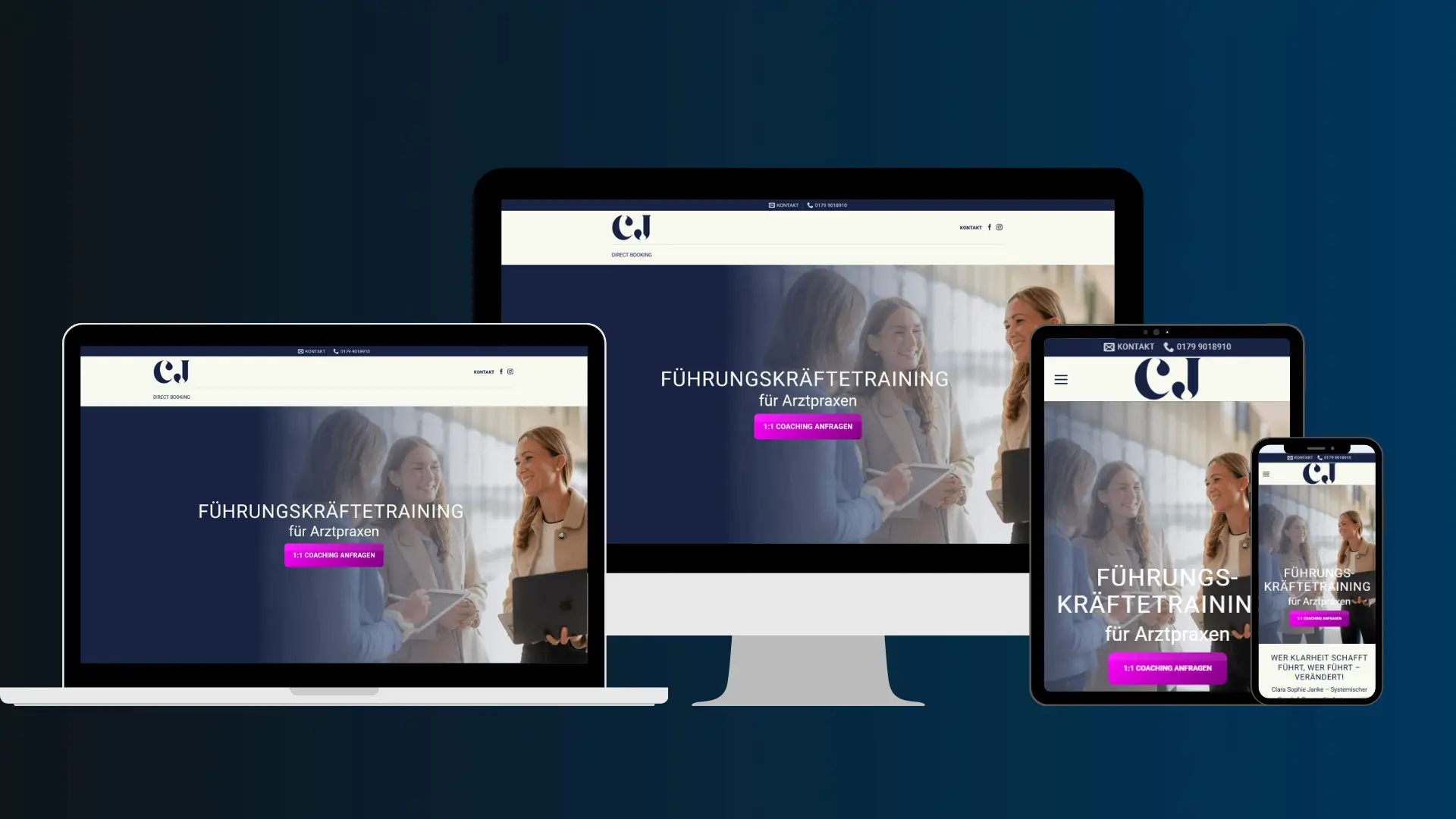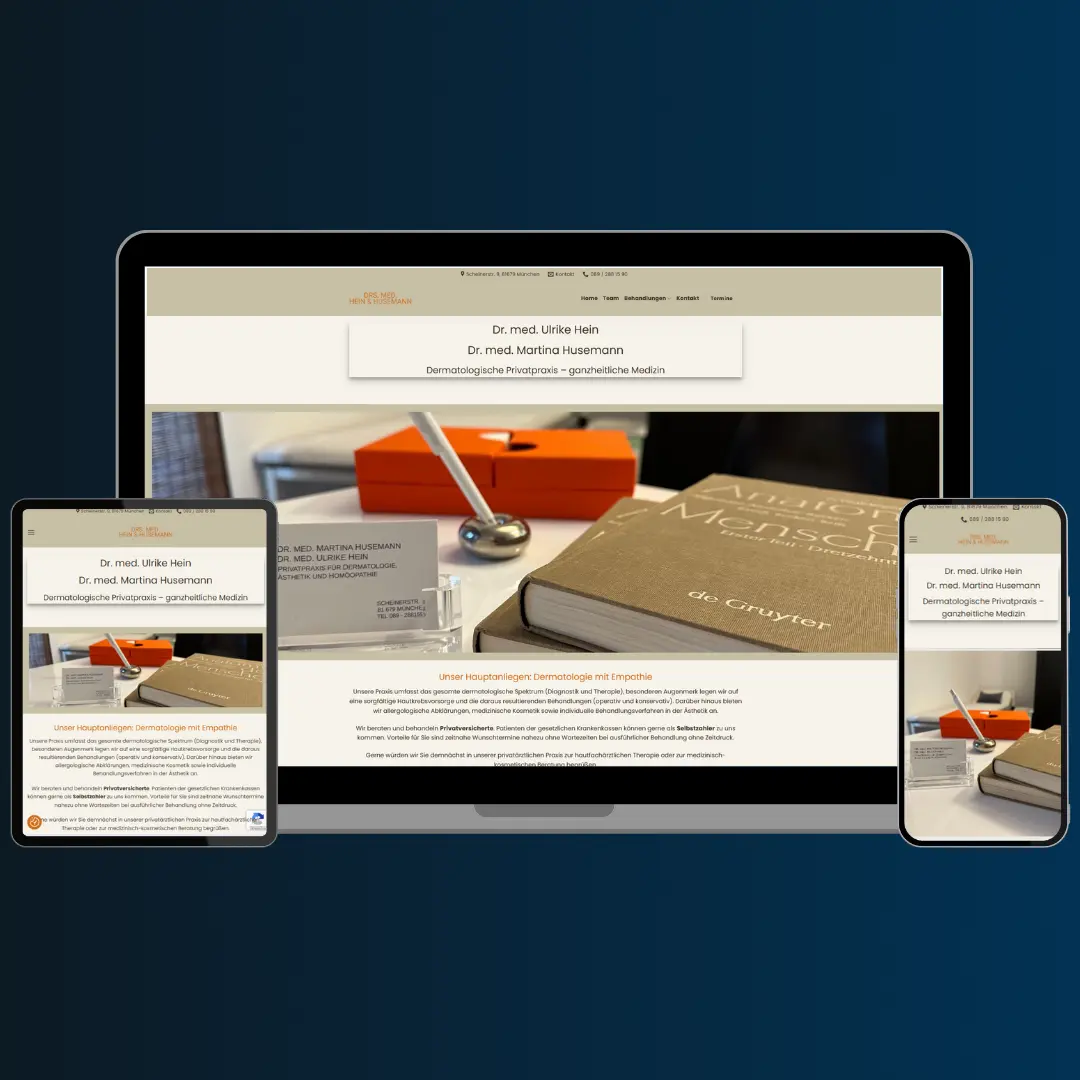 Ein klares, seriöses Webdesign für eine moderne Praxis, fokussiert auf Vertrauen, Übersicht und Patientenfreundlichkeit.