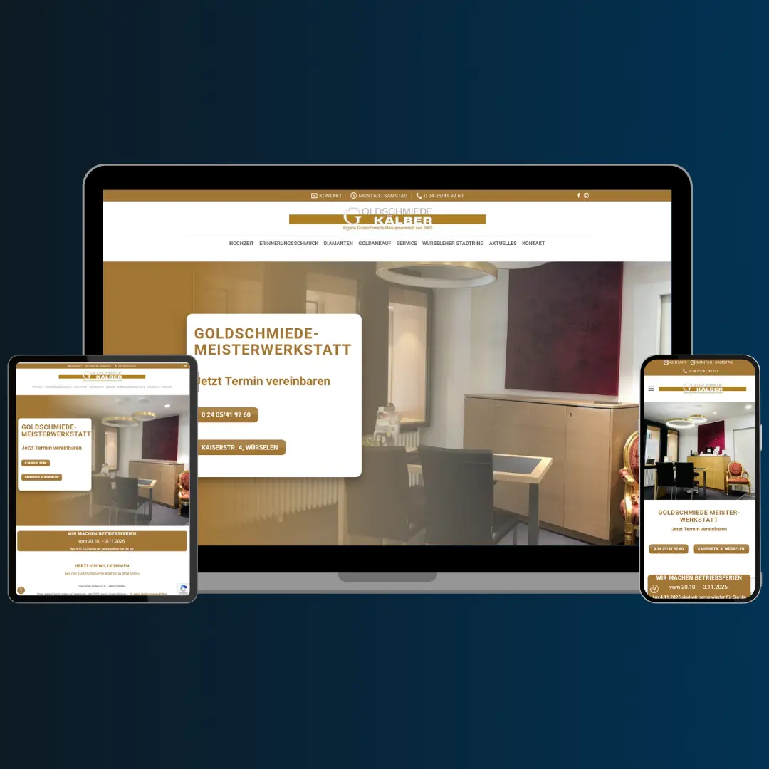 Webdesign und Bildgestaltung für eine lokale Goldschmiede in Würselen. Technisch sauber umgesetzt, suchmaschinenoptimiert und für alle Geräte optimiert.