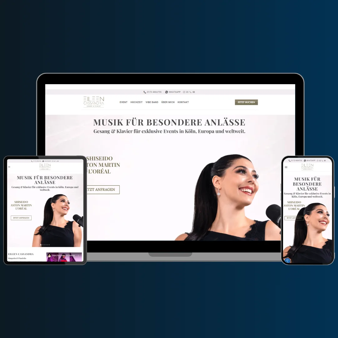 Luxuriöser Webauftritt mit eleganter Gestaltung und starker visueller Präsenz. Fokus auf Emotionalität, hochwertiger Ästhetik und klarer Anfrageführung für Eventbuchungen.